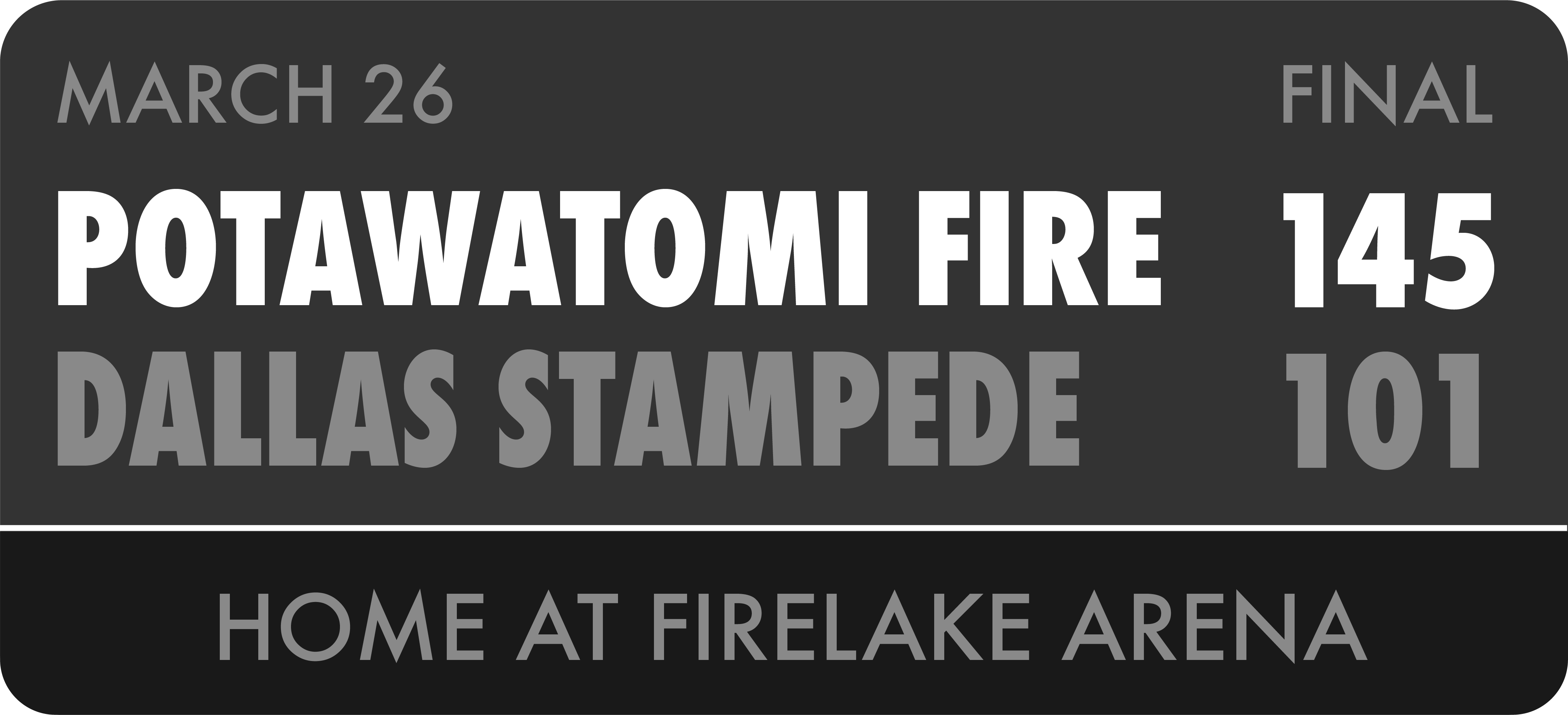 SHAWNEE, OK – The Potawatomi Fire continued their hot start to the 2026 TBL season, beating the Dallas Stampede 145-101 on Thursday night. The win was the Fire’s 27th straight overall and 56th consecutive win inside FireLake Arena. Following a tight first quarter (30-26), the Fire were able to extend their lead to 21 at…