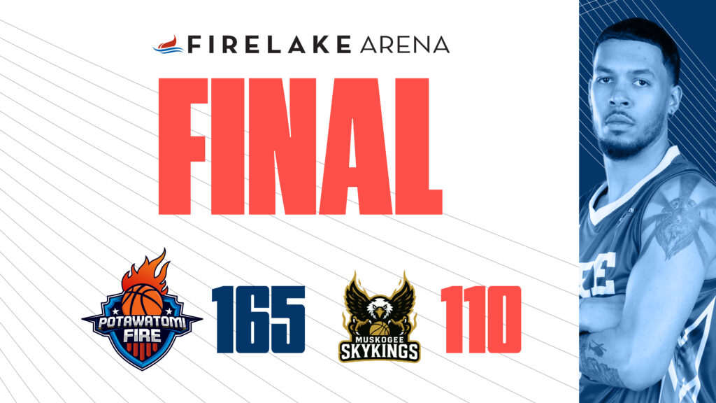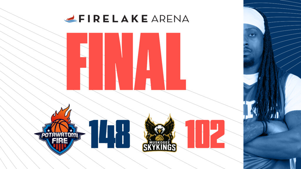 MUSKOGEE, OK – The Potawatomi Fire kept their undefeated season alive with a big 148-102 win over the Muskogee Sky Kings on Friday night. The win was the Fire’s 33rd consecutive win dating back to last season. The Fire got off to a hot start, scoring the first 16 points of the game. Muskogee did…