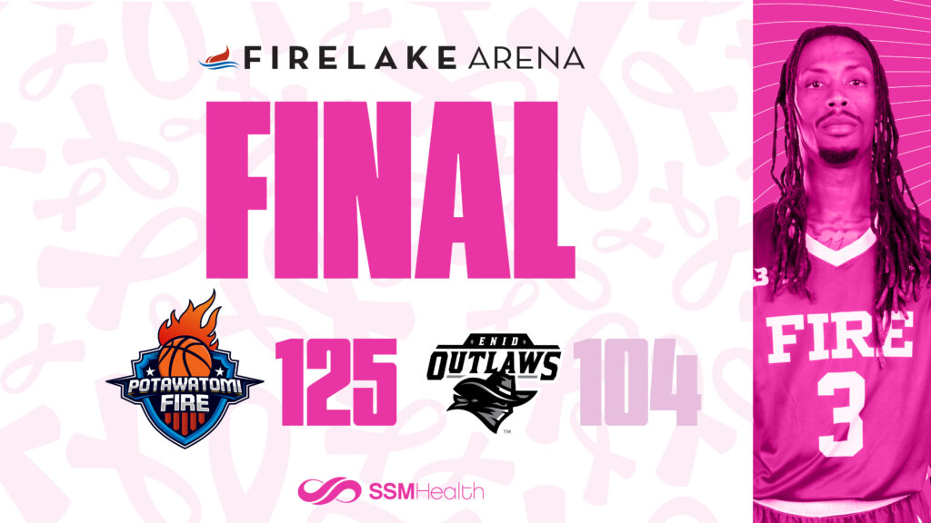 SHAWNEE, OK – The Potawatomi Fire stayed undefeated on the year beating the Enid Outlaws 125-104 on Thursday night. The win was the Fire’s 31st consecutive win overall and their 59th straight win at home. Despite the 21-point margin of victory, the Fire faced their toughest test of the season as Enid consistently hung with…