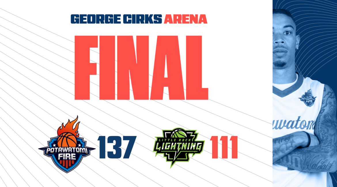 LITTLE ROCK, ARK – The Potawatomi Fire moved to 9-0 on the season with a 137-111 victory over the Little Rock Lightning on Sunday afternoon.