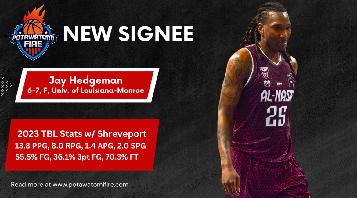 The Potawatomi Fire are excited to announce the signing of Jevonlean “Jay” Hedgeman for the upcoming 2025 season in The Basketball League (TBL).