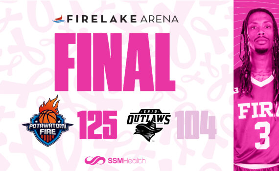 SHAWNEE, OK – The Potawatomi Fire stayed undefeated on the year beating the Enid Outlaws 125-104 on Thursday night. The win was the Fire’s 31st consecutive win overall and their 59th straight win at home. Despite the 21-point margin of victory, the Fire faced their toughest test of the season as Enid consistently hung with…